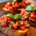 Bruschetta is a classic Italian appetizer that celebrates fresh ingredients in a simple yet delightful way. This dish is perfect for gatherings, picnics, or as a snack while you’re enjoying a nice glass of wine. With its crispy bread base and vibrant topping of tomatoes, garlic, and basil, bruschetta brings a taste of Italy right to your kitchen. It’s quick to make and bursts with flavor.