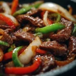 This sizzling pepper steak stands out for several reasons. First, it’s a quick recipe that can be on your table in under 30 minutes—ideal for busy weeknights when you want something delicious but don’t have hours to spend in the kitchen. Second, with its combination of soy sauce, ginger, and garlic, the flavor is complex yet comforting, making it a hit with both kids and adults alike.