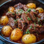 A mouthwatering slow cooker dish featuring tender beef chuck and buttery garlic potatoes, perfect for busy families and cozy dinners.