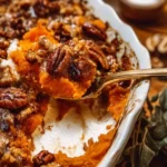 A warm and comforting Southern Maple Sweet Potato Casserole that blends sweet potatoes with maple syrup, topped with marshmallows and crunchy pecans.