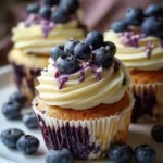 Delightful cupcakes combining the sweetness of white chocolate with tart fresh blueberries, perfect for any occasion.